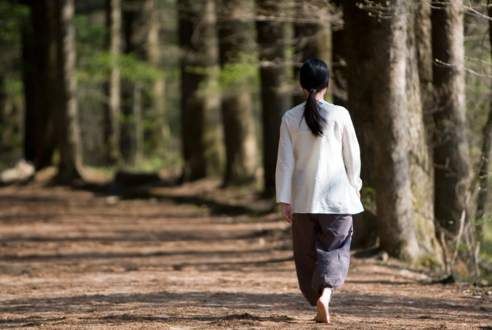 - 교정 방법: 시선은 발밑이 아니라 전방 15~20m 앞을 멀리 바라보세요. 자연스럽게 턱이 들리고 목의 C자 곡선이 살아납니다. 마치 정수리에서 누가 실로 나를 위로 당기고 있다는 느낌으로 키를 키우며 걷는 것이 핵심입니다.